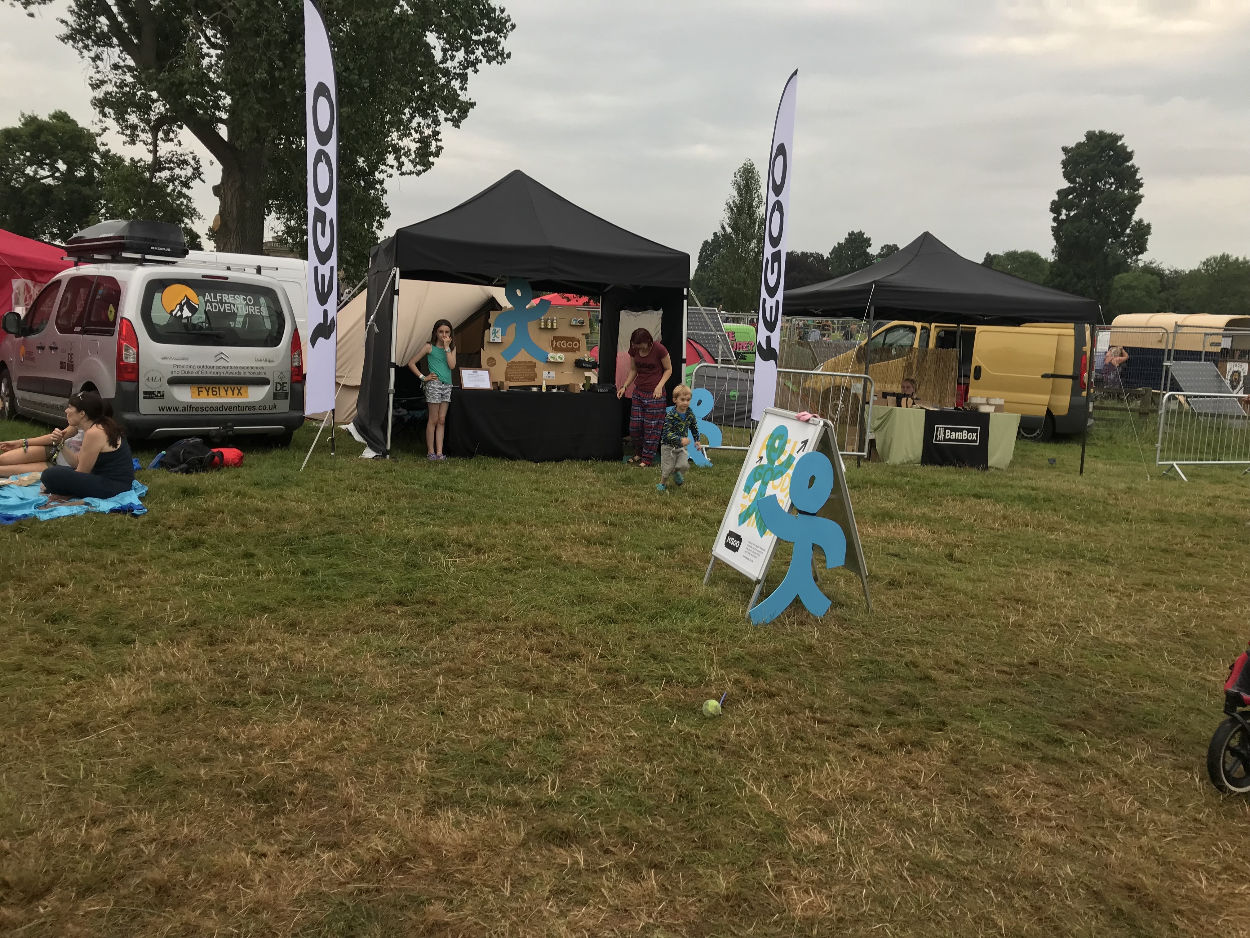 We attended the festival as a whole family, with the car and roof box packed to the rafters like we were going on a real big road trip (not 25 miles down the road). I’m not sure who was more excited me and Gem or the kids! We knew it wasn’t going to be an easy weekend though keeping the kids entertained and happy, whilst still having to work and promote our products, ethos and vision. Been very excited about our first festival with FeGoo and the kids, Gem and I forgot the rain coats and wellies, we just had sandals, shorts and t-shirts, which was ok for the Friday, but Saturday the heavens opened we soon realised we hadn’t checked the local weather, the site soon turned into a field of mud, mud and more mud. It was that wet and muddy on Saturday we thought it would’ve been a write-off but people still came over to chat, enquire what we were doing and buy our products- thank you to those that did.
